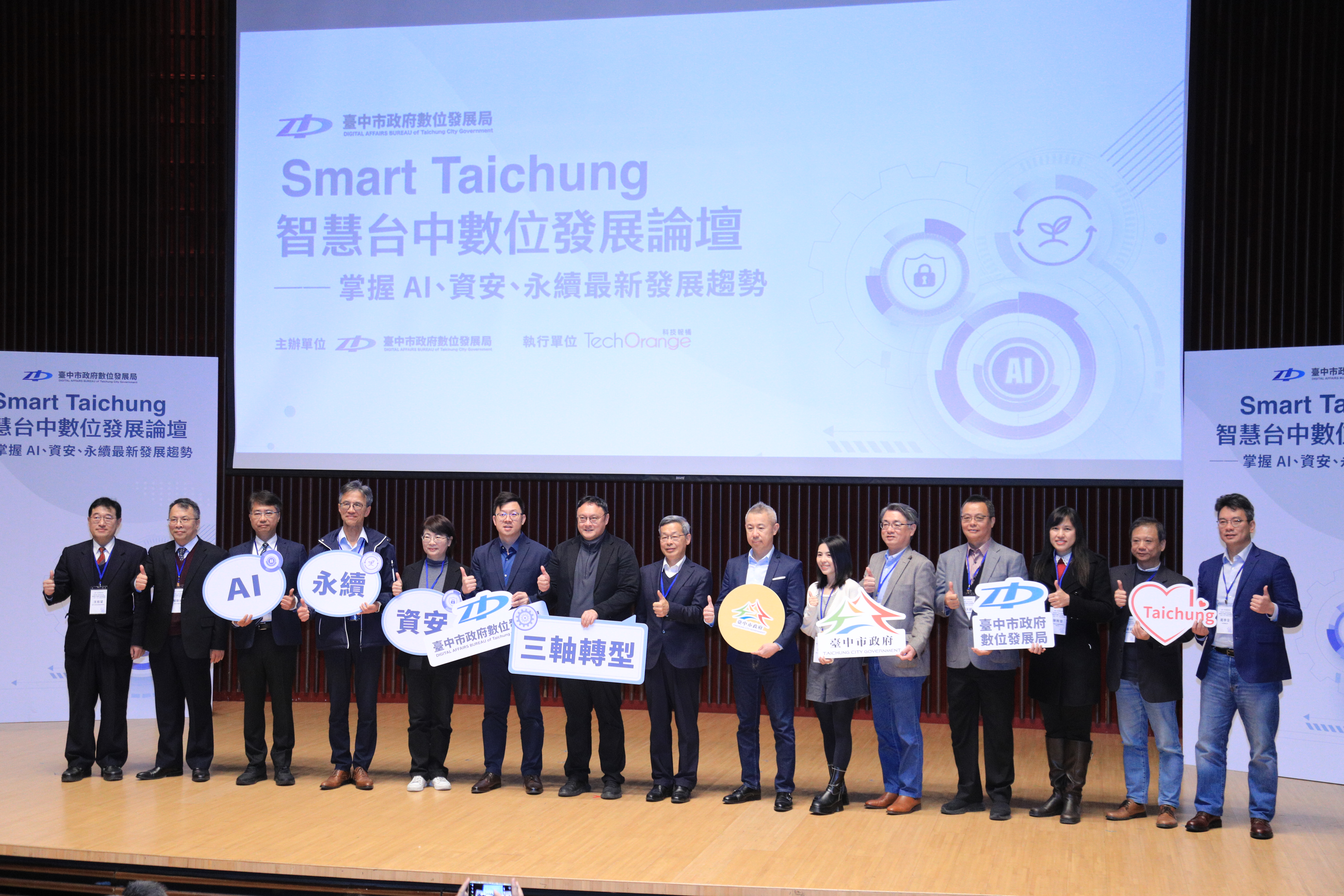 鄭副市長提到,面對AI快速發展,數位治理局今年元旦更名為「數位發展局」,展現市府對數位發展的重視,未來更將著重前瞻性科技引導到市政治理、發展與培力,並促進產學研機構的資通訊應用合作,協助中台灣產業走向數位轉型、淨零轉型與資安升級。